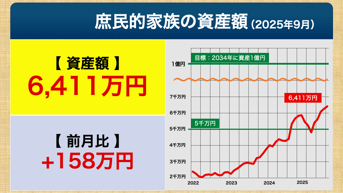 資産配分を分析 皆さんどうも、パパっちです。先日は2025年9月の庶民的家族の総資産額を公開しました。 https://journey-to-fi.com/6411-2025-9-shisansyukei/8378/ 集計の結果、我が家の総資産は3か月連続で過去最高となる64,112,277円でした。ただ、これ...【資産速報】6,411万円到達|達成率151.2%(2025年9月)