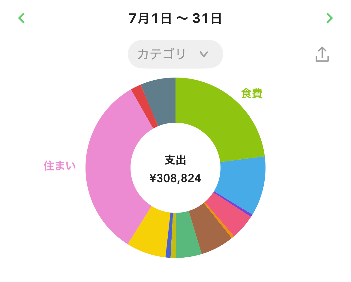 7月の支出は308,824円でした。3人家族の支出明細を以下に記します。