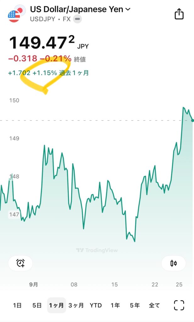 一方、USD/JPYの為替レートも1か月で1.15%上昇