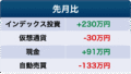 大幅な株高、円安の割に資産の増加幅は大きくありません。詳細は次回の「全ポートフォリオ公開」で触れますが、仮想通貨の下落自動売買(トラリピ)の含み損増が要因です。