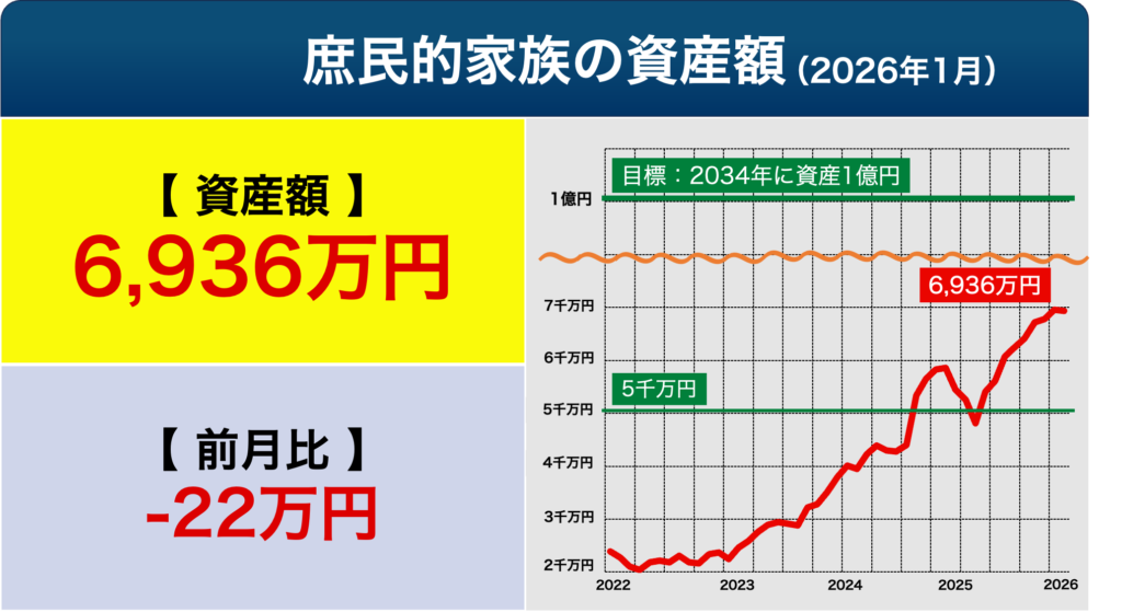 【資産公開】9ヶ月ぶりの減少…。目前だった「7,000万円」が遠のいた理由(2026年1月)