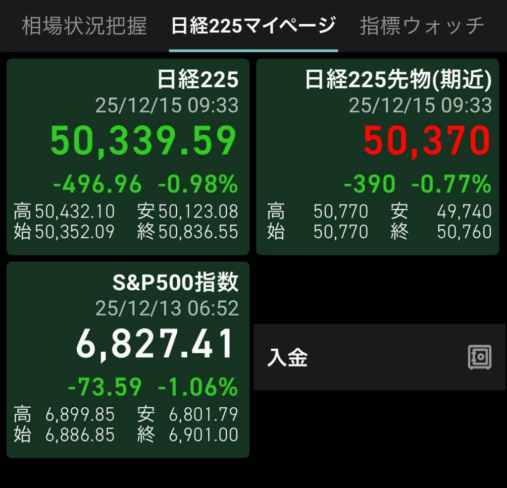 ただ今日は日経が1%近くの下落相場。運が悪い……。