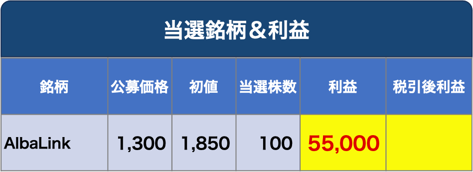 ⚫︎AlbaLinkを初値で売却し55,000円の利益を獲得