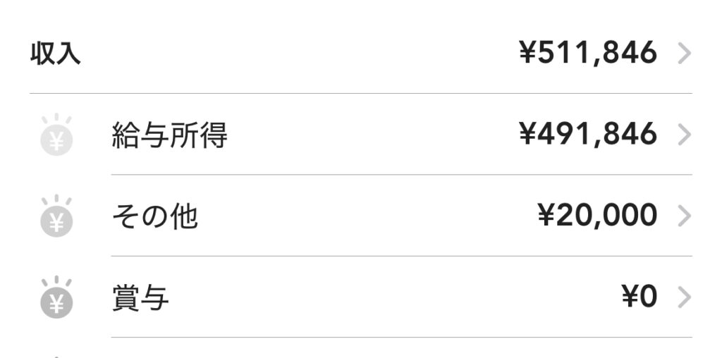 「給与所得」に加え、児童手当(その他)20,000円が入りました。