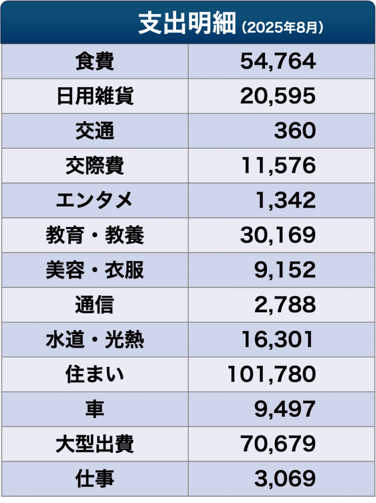 庶民的家族の家計簿と貯蓄率(2025年8月)