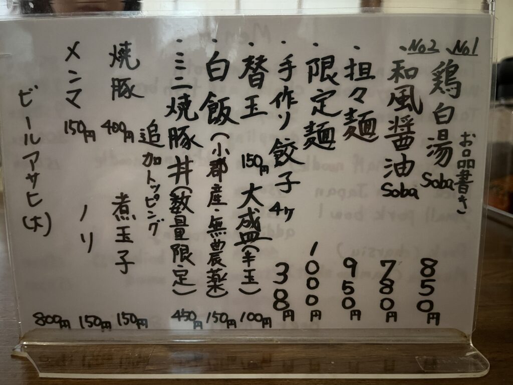 私たちは「鶏白湯(焼豚・煮玉子をトッピング)」と「和風醤油」を注文。