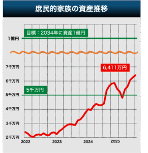 2025年2月の総資産額は5,451万円でした。先月比で400万円の減少です。